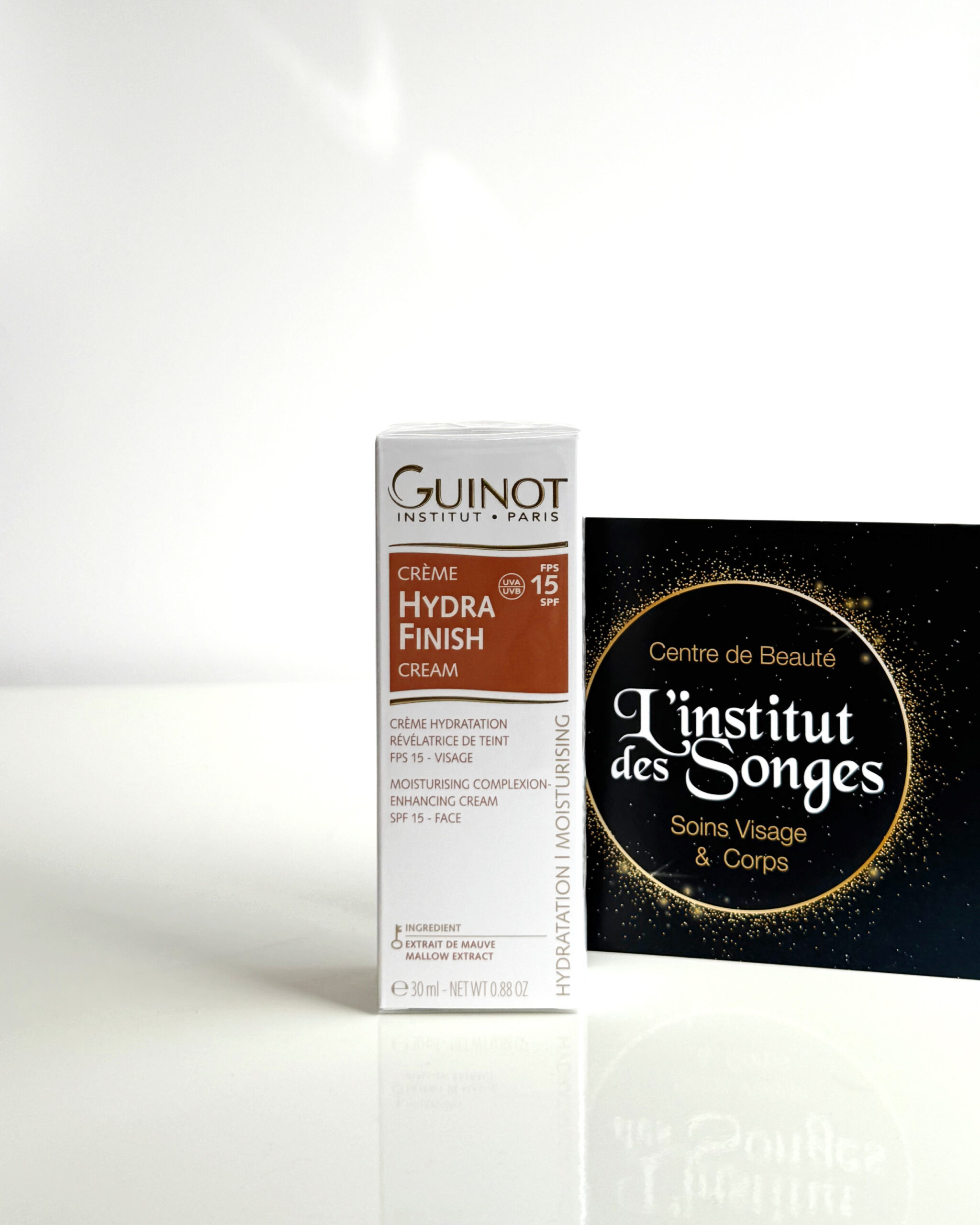 Hydra Finish, c’est le meilleur de l’expertise en recherche cosmétique Guinot associé au plaisir d’une crème de soin grâce à une formule unique mêlant pigments encapsulés et extraits de mauve. Enrichi d’une protection SPF 15, HYDRA FINISH aide la peau à lutter contre les rayons UV responsables des troubles de la pigmentation.